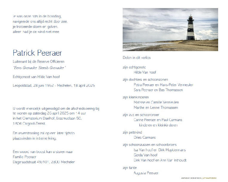 Langs deze weg bieden we onze diepe medeleven aan aan de familie en